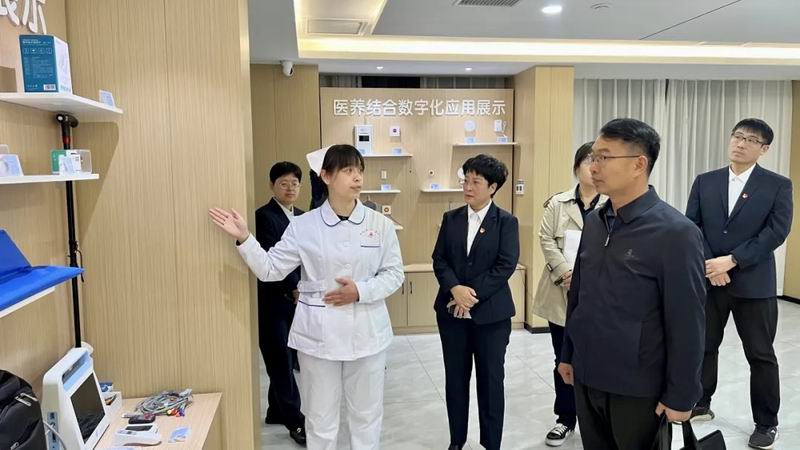 在人民路院区,专家组一行来到医养结合数字化中心(智慧医养一体化平台),详细了解了数字化中心通过可穿戴设备,动态监测机构、社区及居家老人活动、健康状况与风险状况,适时上传服务平台、家属及老人APP终端,可实现老人在家门口享受全方位的医康养服务。专家组成员对智慧医养一体化平台在提升医疗服务质量、加强老年人健康管理等方面所发挥的重要作用给予高度评价。