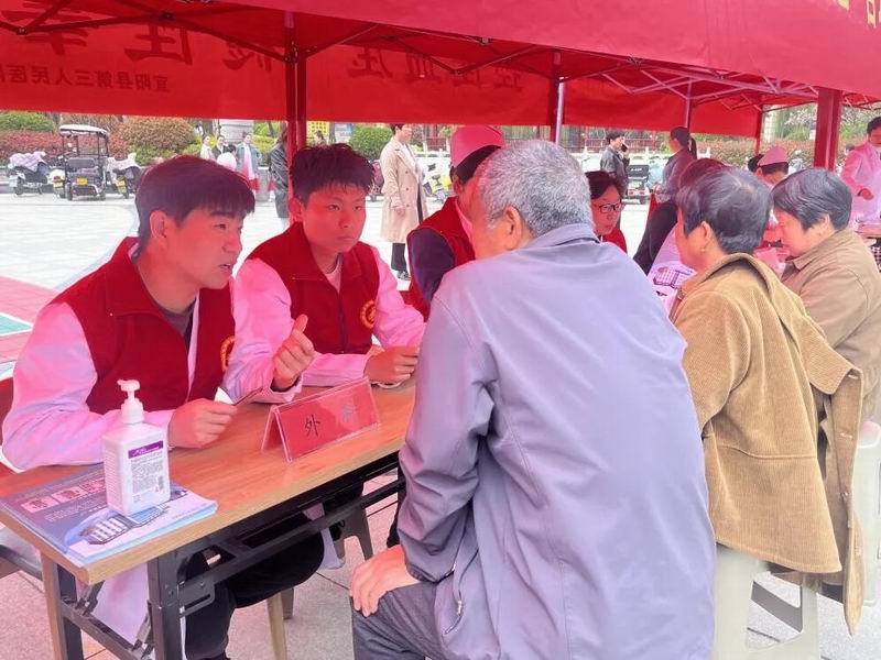 义诊活动设有儿科、外科、骨科、中医康复科、疼痛调理科、测量血压处、内科、慢病咨询、老年医学科和养老服务咨询处,参与活动的健康志愿者为群众提供免费的医疗咨询、中医手法疼痛调理体验、慢病咨询、医养服务咨询等。
