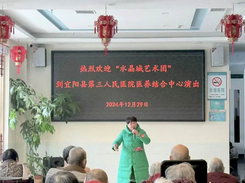 辞旧迎新元旦到,欢庆时刻送祝福!沉淀一年的思念,转眼又是新的明天,陈年钟声,敲醒吉祥画面,在2025年元旦即将到来之际,为丰富医养中心老人精神文化生活,促进老人关系和谐,提升老人生活幸福感,让大家在欢乐祥和的气氛中喜迎元旦的到来。水晶城文化艺术团来到宜阳县第三人民医院医养结合中心为老人举办迎新年元旦联欢会。