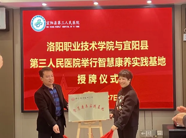 在全体与会人员的见证下,洛阳职业技术学院正式向宜阳县第三人民医院授予“课程思政实践基地”与“智慧康养实践基地”牌匾,标志着双方合作进入实质性推进阶段。