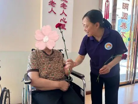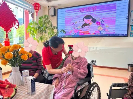 活动开始,工作人员俯身将康乃馨递到老人手中,嘴里轻声说着:“母亲节快乐!”这简单的话语,饱含着深深的爱意。这些看似微小的动作,却有着无比强大的力量,让老人们湿润了眼眶,脸上也不自觉地扬起了幸福的笑容。