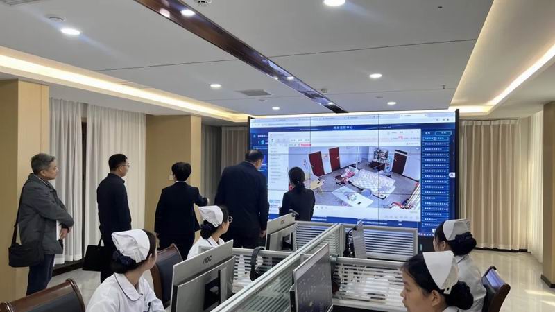 在人民路院区,专家组一行来到医养结合数字化中心(智慧医养一体化平台),详细了解了数字化中心通过可穿戴设备,动态监测机构、社区及居家老人活动、健康状况与风险状况,适时上传服务平台、家属及老人APP终端,可实现老人在家门口享受全方位的医康养服务。专家组成员对智慧医养一体化平台在提升医疗服务质量、加强老年人健康管理等方面所发挥的重要作用给予高度评价。