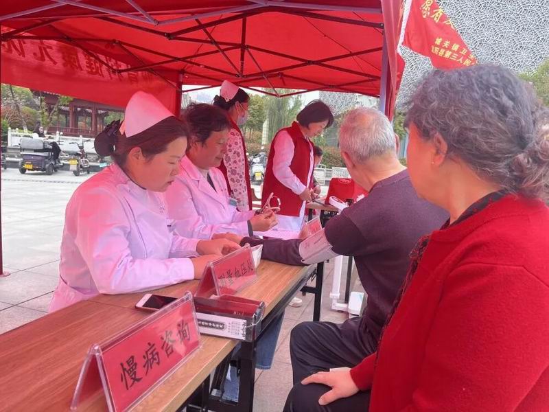 义诊活动设有儿科、外科、骨科、中医康复科、疼痛调理科、测量血压处、内科、慢病咨询、老年医学科和养老服务咨询处,参与活动的健康志愿者为群众提供免费的医疗咨询、中医手法疼痛调理体验、慢病咨询、医养服务咨询等。