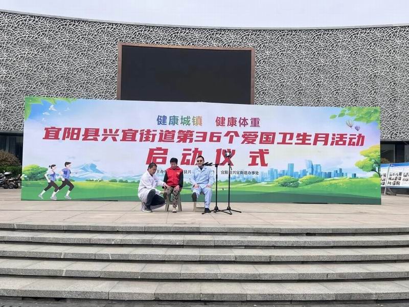 4月10日上午,宜阳县兴宜路街道办事处在水晶城广场举办第36个全国爱国卫生运动宣传月启动仪式。宜阳县第三人民医院(城关镇卫生院)健康志愿者在活动中为群众提供了一系列的义诊、健康宣教、消防安全科普等。