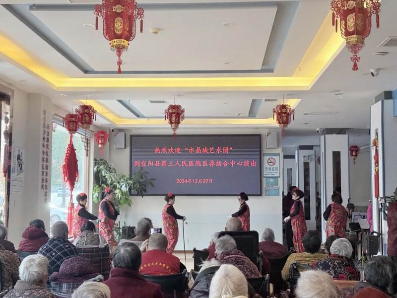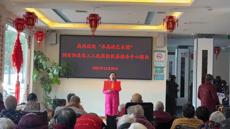 辞旧迎新元旦到,欢庆时刻送祝福!沉淀一年的思念,转眼又是新的明天,陈年钟声,敲醒吉祥画面,在2025年元旦即将到来之际,为丰富医养中心老人精神文化生活,促进老人关系和谐,提升老人生活幸福感,让大家在欢乐祥和的气氛中喜迎元旦的到来。水晶城文化艺术团来到宜阳县第三人民医院医养结合中心为老人举办迎新年元旦联欢会。