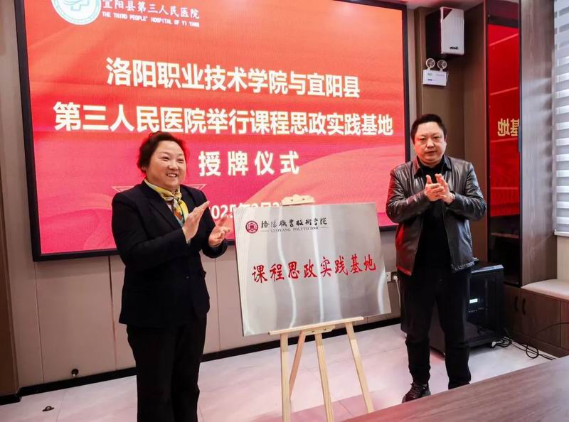 在全体与会人员的见证下,洛阳职业技术学院正式向宜阳县第三人民医院授予“课程思政实践基地”与“智慧康养实践基地”牌匾,标志着双方合作进入实质性推进阶段。